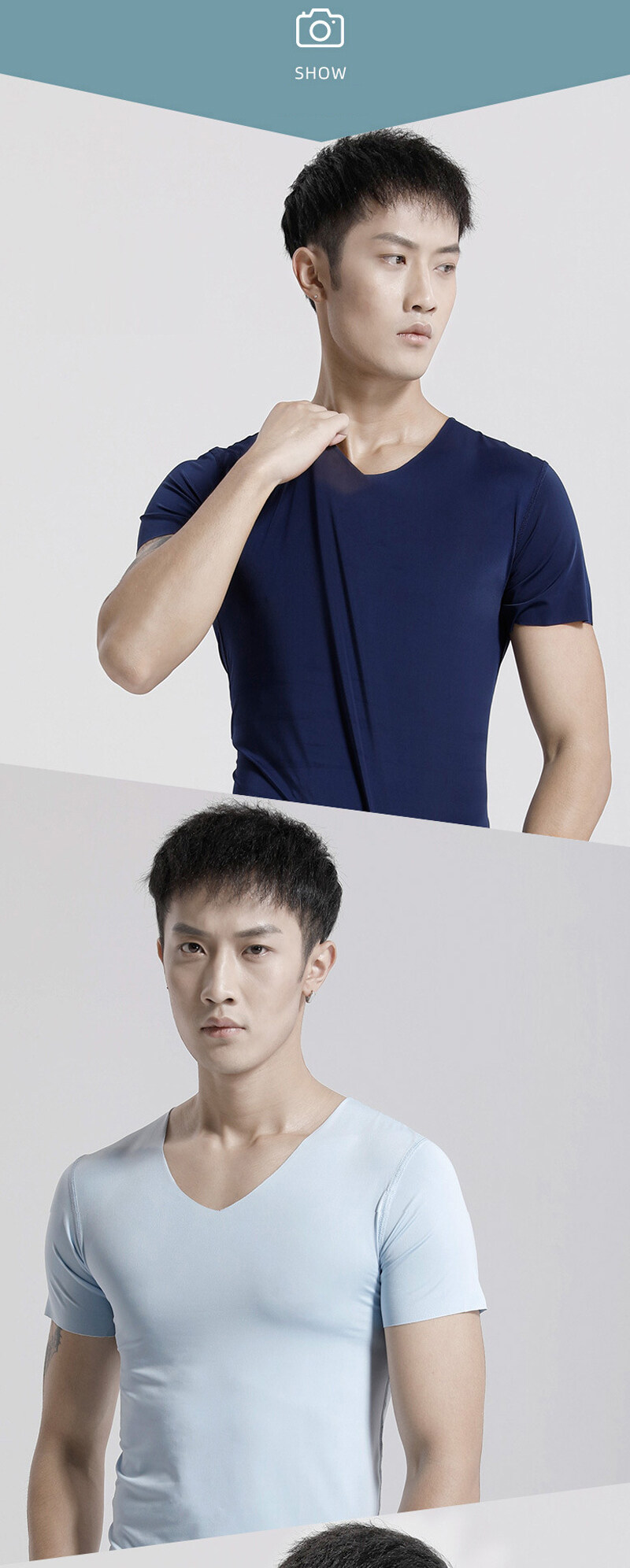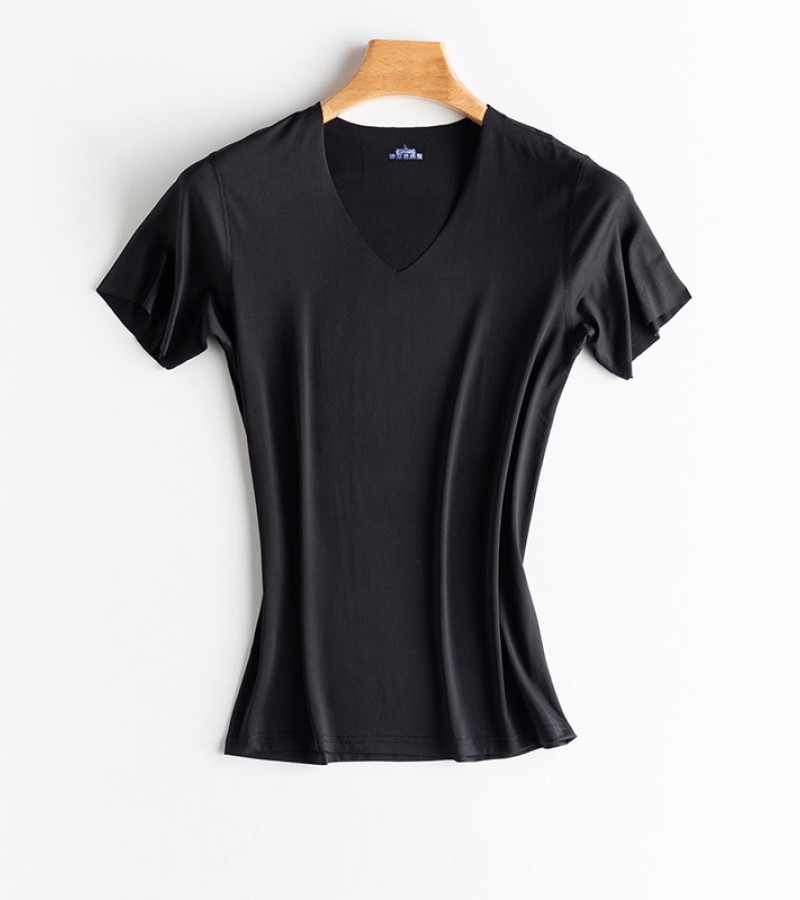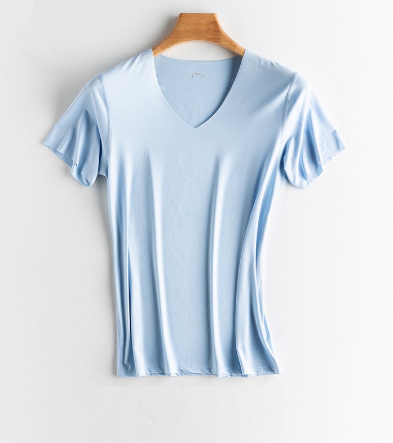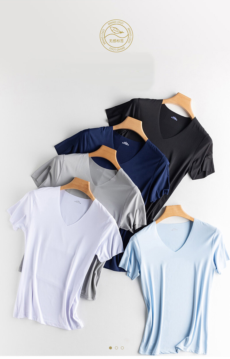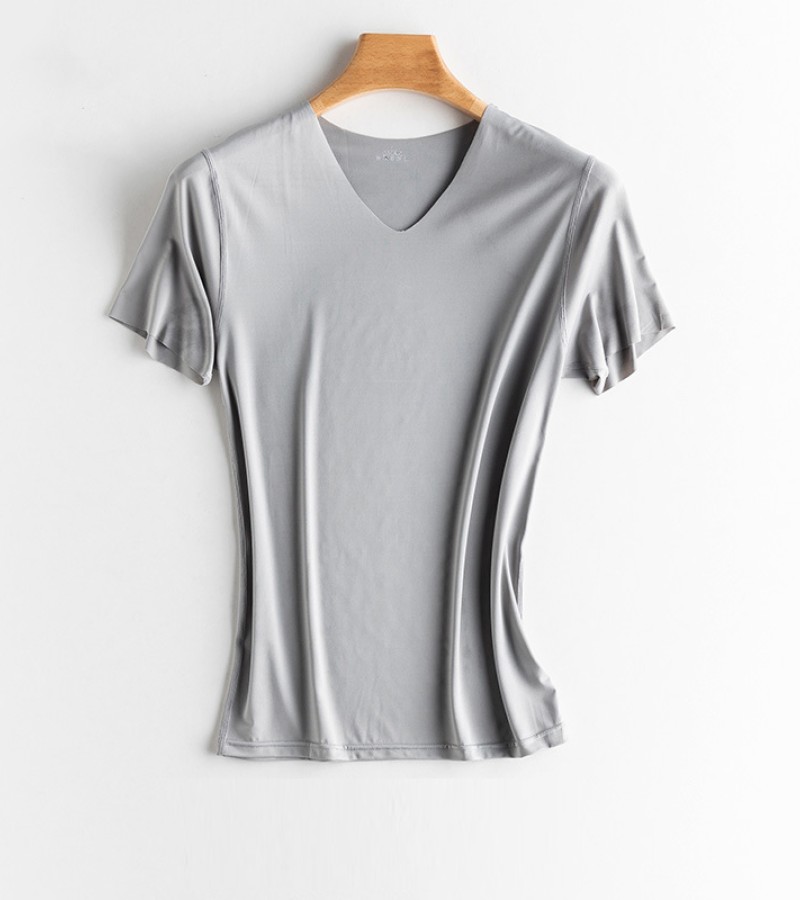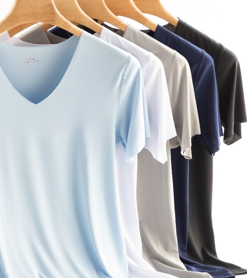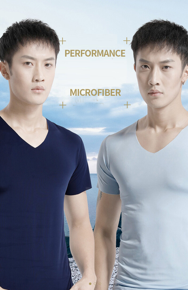 KYUSHUAD冰丝无缝男式短袖T恤V领夏季薄弹力上衣网眼快干