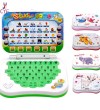 Features: 1.Press the key to start learning. If you press the key after pressing the key, the learning machine will automatically shut down. If you need to use it, you need to press the key again. 2.It has 26 English alphabet keys and 10 numeric keys. Chinese, English learning, can be used as the keyboard of the keyboard, playing music. 3.There are 26 English alphabet keyboards, which correspond to 32 English words and picture knowledge points on the flip cover. When the machine questions, 26 letters are controlled to answer the questions, and after switching, it becomes 26 songs. 4.Fruit and animal prints, click to read in English and Chinese. (Color Random) 5.Chinese mode, English mode, music mode, singing mode, alphabet mode, word mode, spelling mode, and question mode are available for selection.Specification:Item Name: Learning MachineSize: 12x15.5cmFunction: Chinese&English Learning, Preschool educationSuit for: 3+ years older kidColor: RandomPowered By: 3x AA battery(Not Included)Included: 1x laptop