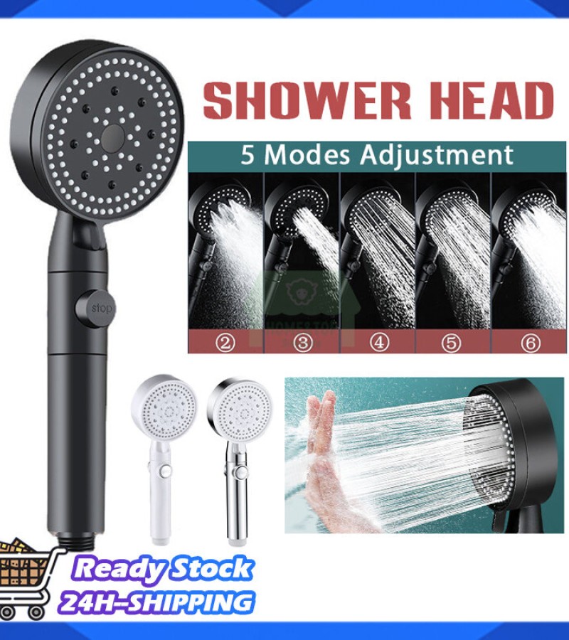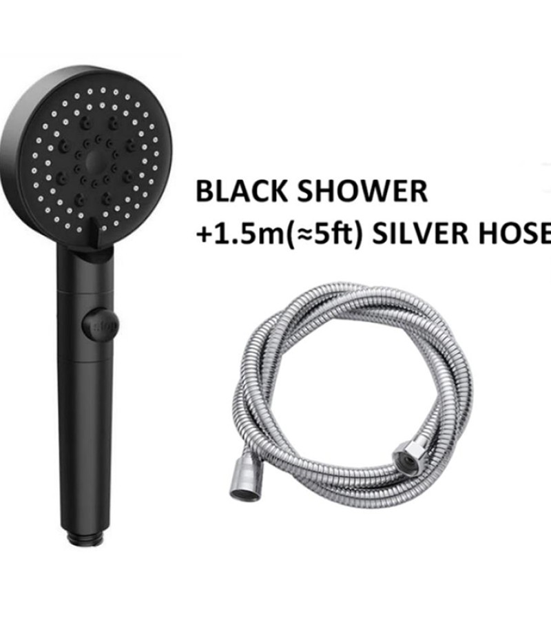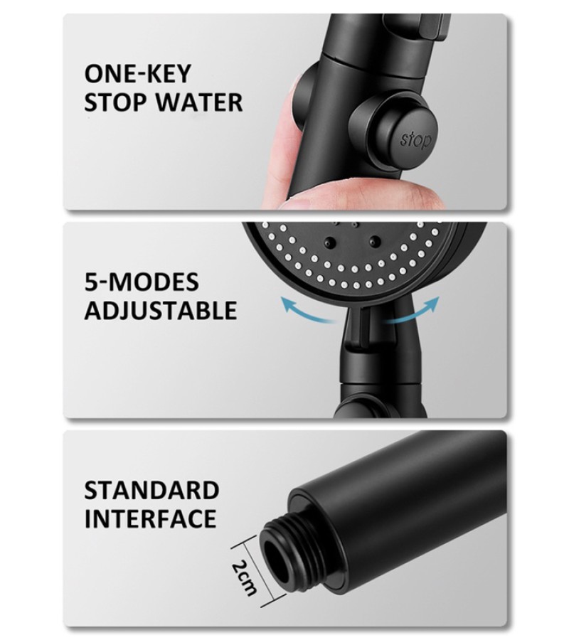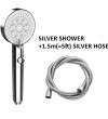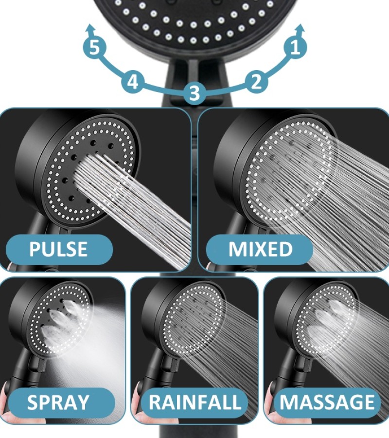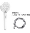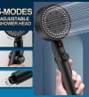 高压淋浴头5种模式可调节淋浴头,带1.5m软管节水一键式喷嘴浴室淋浴头配件