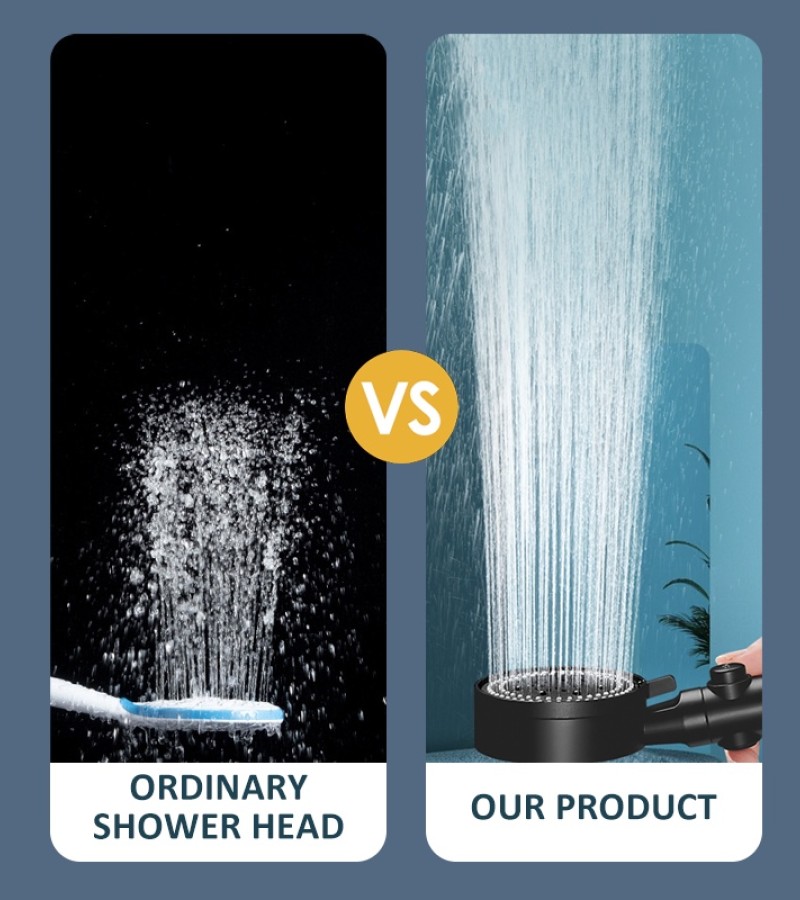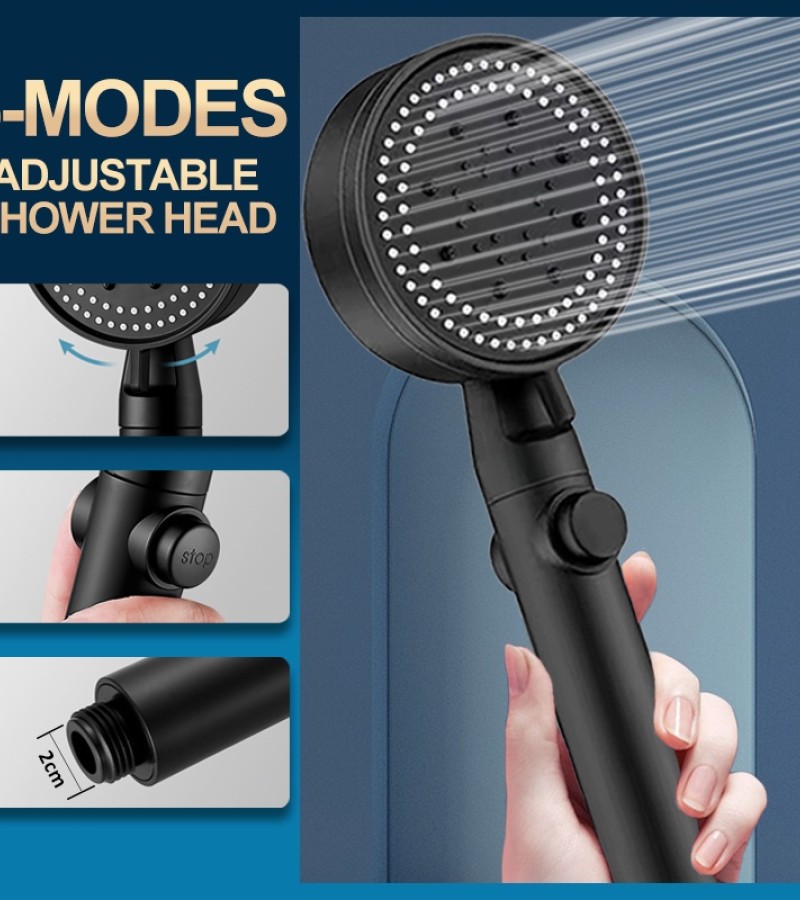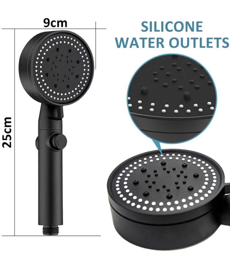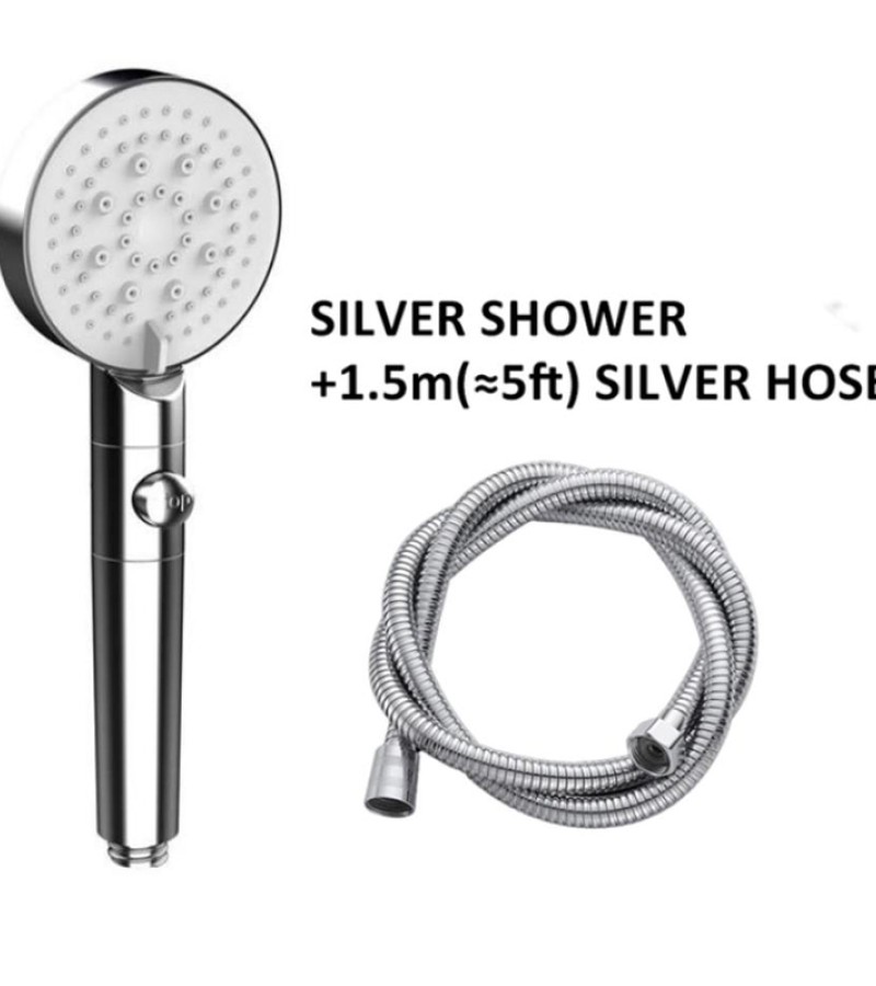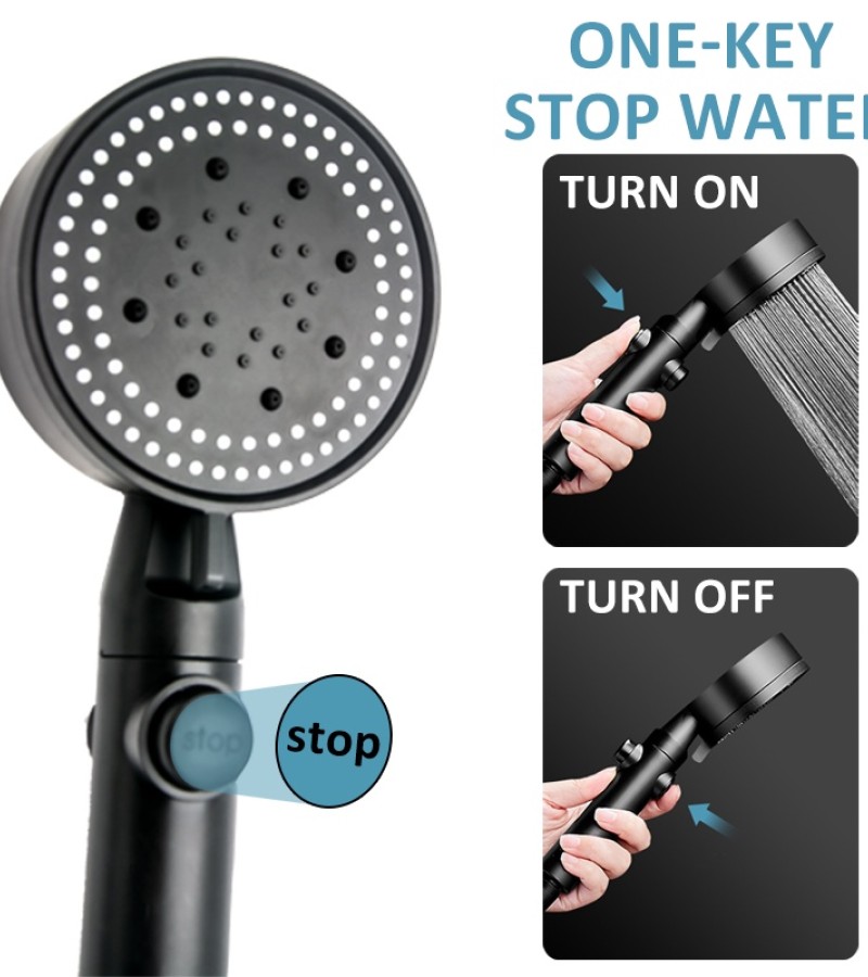 高压淋浴头5种模式可调节淋浴头,带1.5m软管节水一键式喷嘴浴室淋浴头配件