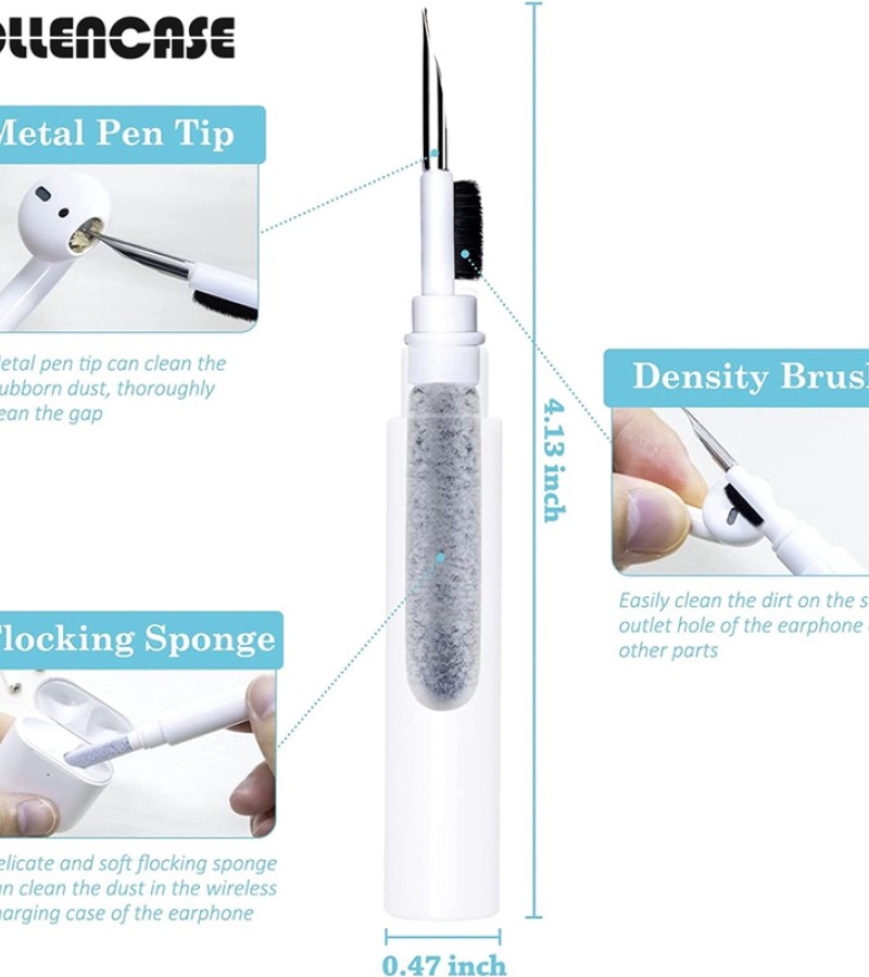 The Bluetooth earbuds cleaning pen combines three functions in one portable gadget with each part playing its role. Switch the head to use a flocking sponge, high-density brush, or metal tip, dealing with different cleaning tasks.