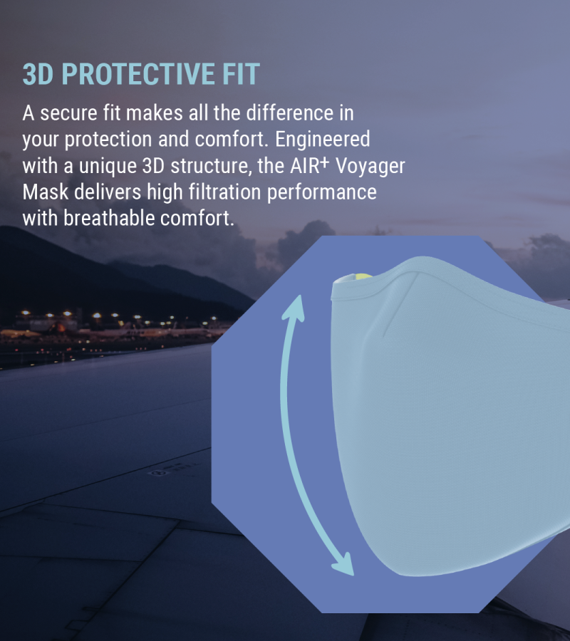 AIR⁺Voyager |可重复使用口罩| M&L尺寸|1件|可洗|抗菌|防水|可调节耳环