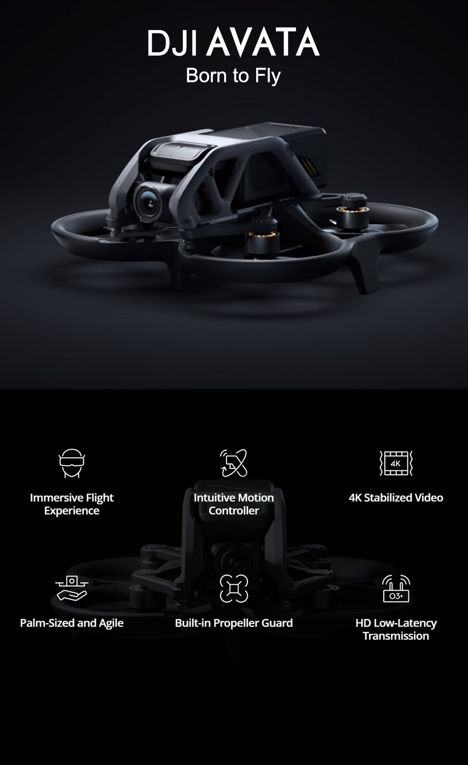 1. DJI Avata can be used with and DJI Motion Controller. The easy and intuitive control allows you to experience a more immersive flight and aerial photography.