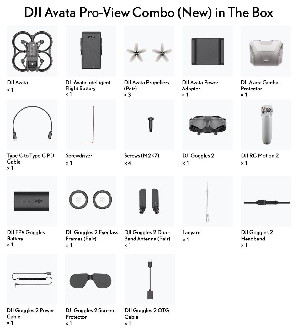 DJI Avata Pro-View Combo: Includes DJI 2 and DJI Motion Controller, which can realize intuitive control by hand and head movements to provide an immersive sensory experience with flexibility and ease.