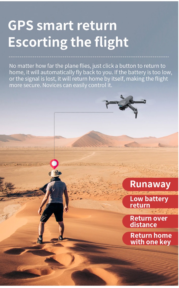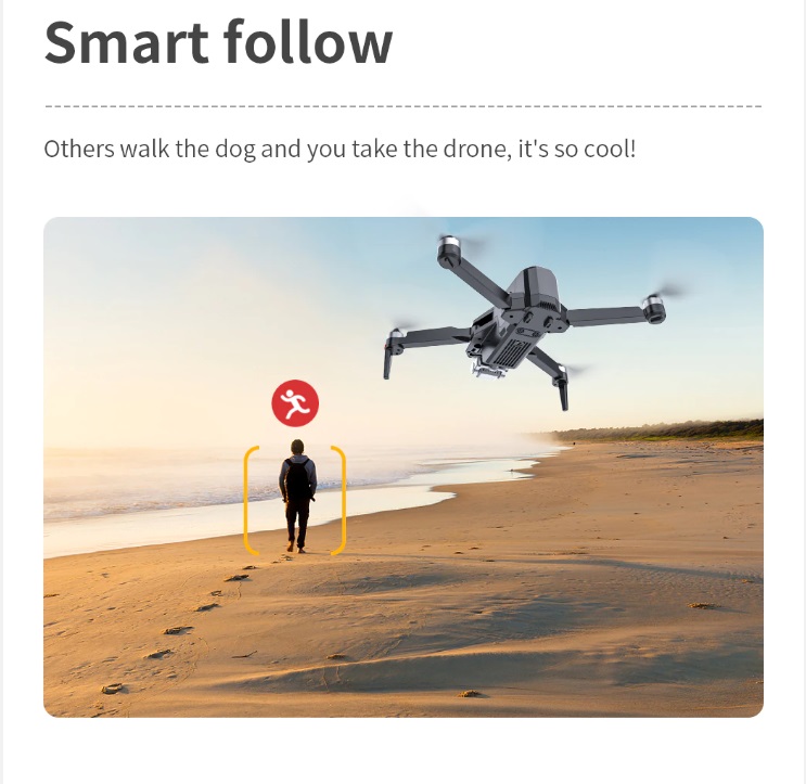 -- Three axis Electronic Stabilization gimbal -- EIS electronic image stabilization camera -- GPS/GLONASS double mode -- 1200 M remote control distance (Outdoor and unobstructed, depend on conditions and mobile device) -- 500 M HD image transmission distance (Outdoor and unobstructed, depend on conditions and mobile device) -- Real-time image transmission -- Intelligent follow -- Surround flight -- Waypoint flight -- Point of Interest -- Visiting Trace -- Image Scaling -- Folding portable fuselage -- One key return -- Video Editing -- Gesture control -- Brushless motor -- MV functions: filters, video effects, add background music, picture / video sharing